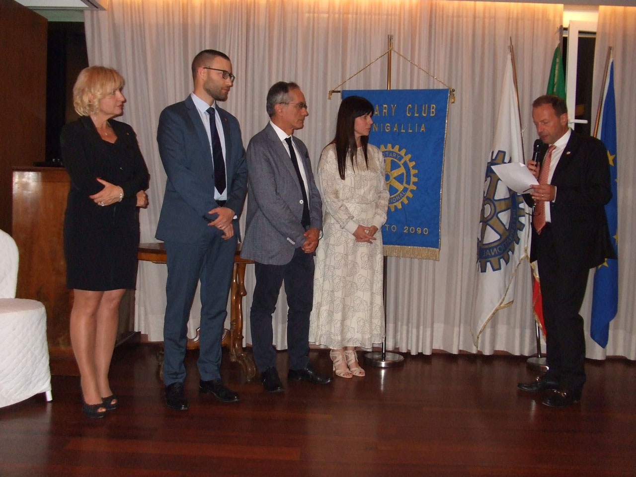 Quattro nuovi soci entrano a far parte del Rotary Club Senigallia; la cerimonia d’ingresso si è svolta alla presenza del past Governatore del Distretto 2090 Mauro Bignami il quale, ricordando che i nuovi membri si aggiungono agli oltre un milione e duecentomila rotariani in 168 nazioni per offrire competenze e impegno al servizio delle comunità, ha avuto il gradito compito di consegnare loro il distintivo del Sodalizio attivo da oltre un secolo.